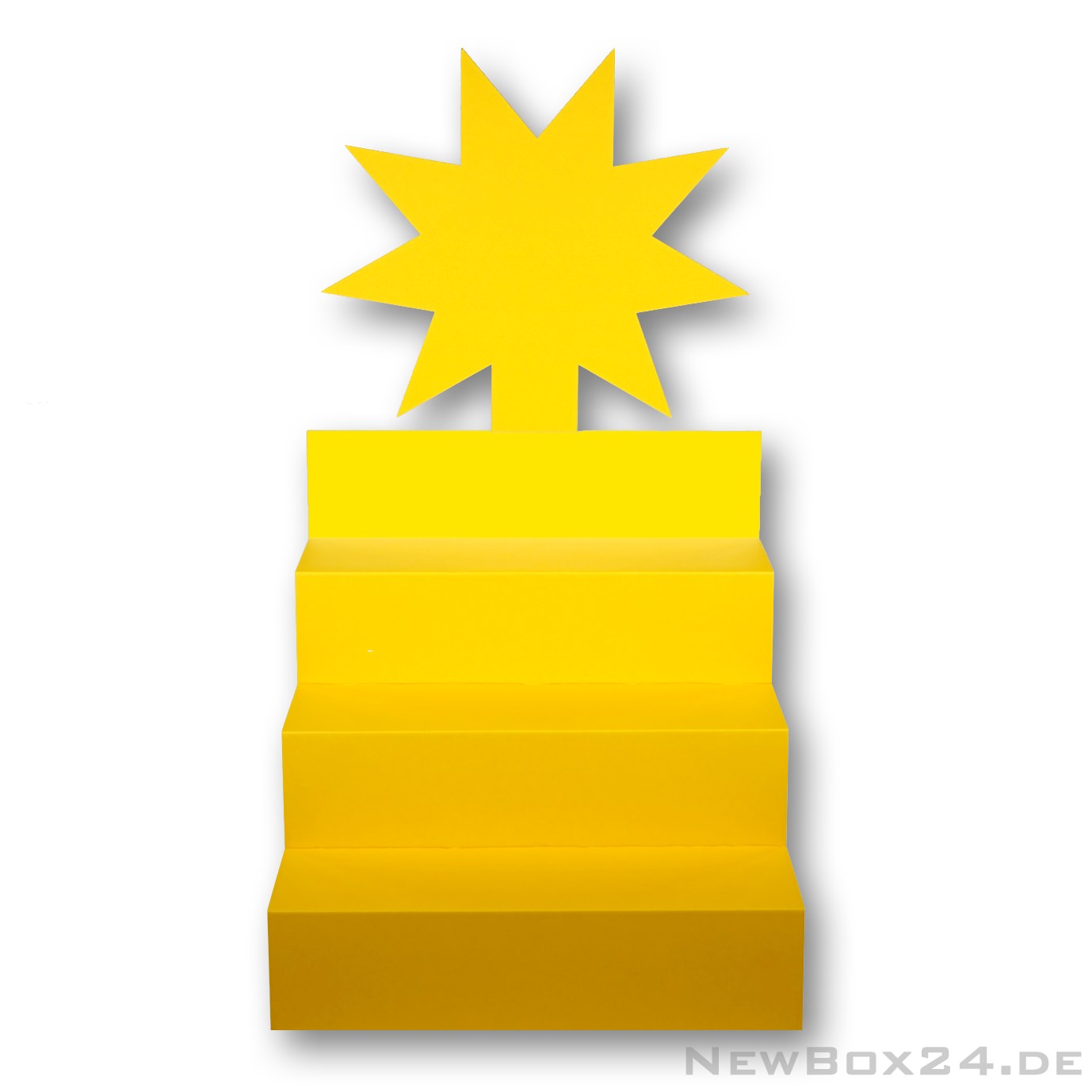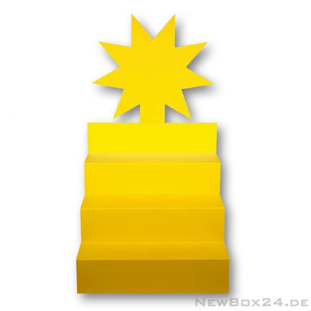 Treppendisplay 658 Stern - Außenmaße ca. 385 x 370 x 360 mm, Wellkarton glatt einfarbig in Farbe 25 goldgelb, Lieferung ungefaltet