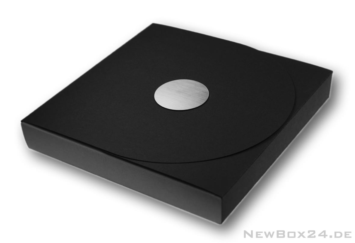 Exklusive Magnet-Klappbox 160 x 160 x 25 mm (Innenmaße), mit Magnetverschluss, im Multi-Color-Design, Karton-Standardfarbe Innen- und Außenteil nach Wahl (gold, silber, dekor gegen Aufpreis möglich), inklusive Schaumstoffeinlage 15 mm, Lieferung komplett gefaltet