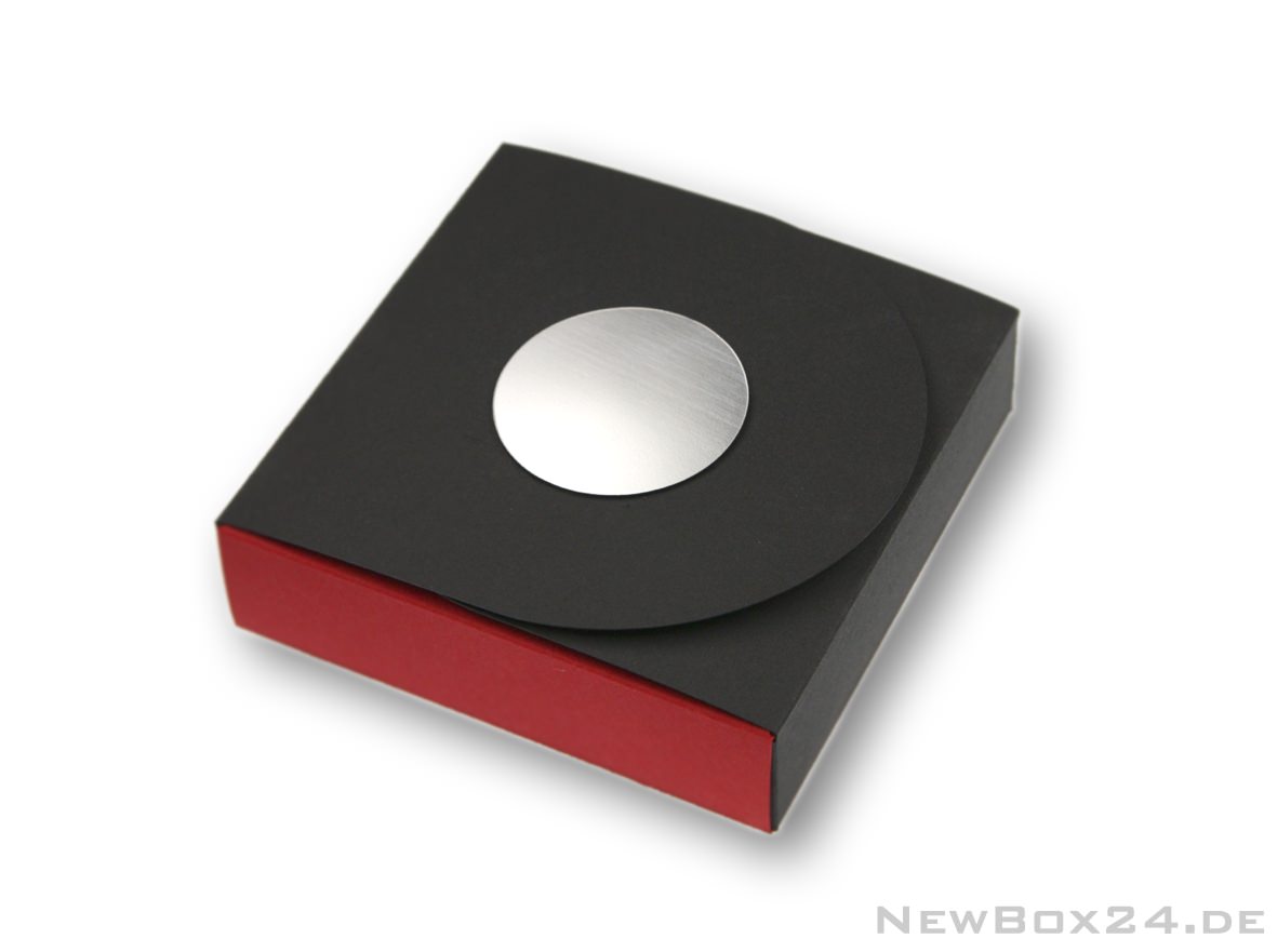 Exklusive Magnet-Klappbox 80 x 80 x 25 mm (Innenmaße), mit Magnetverschluss, im Multi-Color-Design, Karton-Standardfarbe Innen- und Außenteil nach Wahl (gold, silber, dekor gegen Aufpreis möglich), inklusive Schaumstoffeinlage 15 mm, Lieferung komplett gefaltet