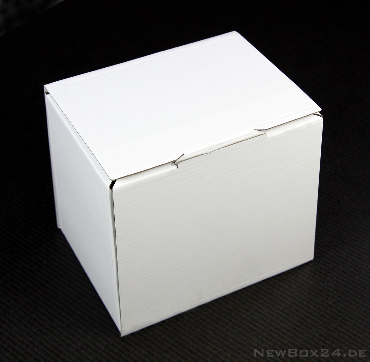 Klappdeckelbox 210-07, 142 x 110 x 130 mm (Innenmaße), Wellkarton weiß, Lieferung ungefaltet