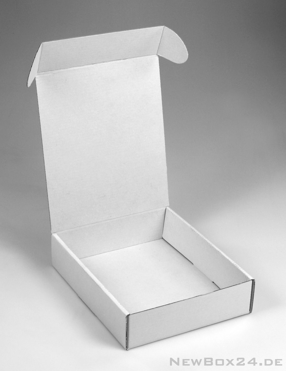 Klappdeckelbox 212 - 195 x 155 x 45 mm (Hochformat - Innenmaße), Wellkarton glatt in Standardfarbe weiß (Farben gegen Aufpreis möglich), Lieferung ungefaltet