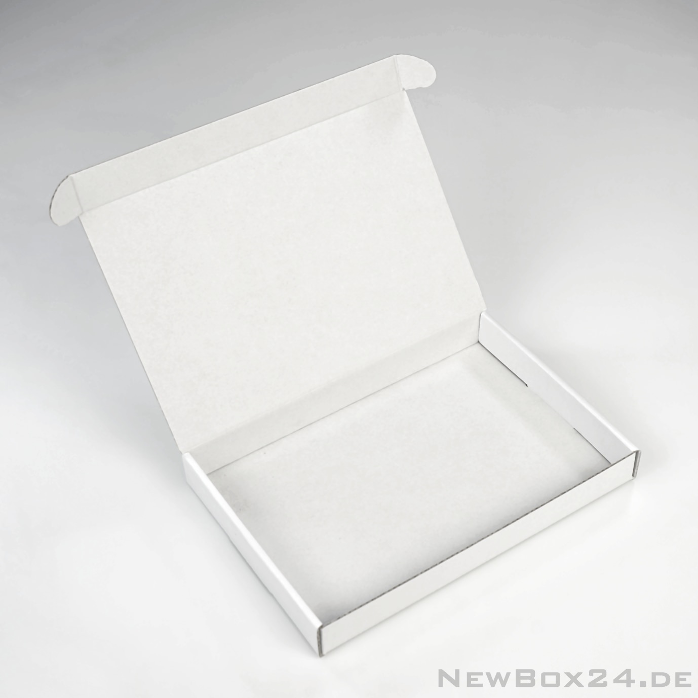 Klappdeckelbox 212 - 215 x 150 x 25 mm (Innenmaße), Wellkarton glatt in Standardfarbe weiß (Farben gegen Aufpreis möglich), Lieferung ungefaltet