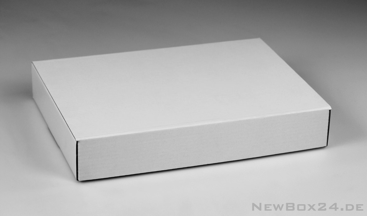 Klappdeckelbox 212 - 262 x 152 x 40 mm (Innenmaße), Wellkarton glatt in Standardfarbe weiß (Farben gegen Aufpreis möglich), Lieferung ungefaltet
