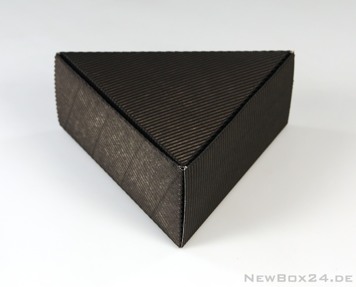 Klappdeckelbox 214 Triangel - 180 x 70 mm - Wellkarton (Innenmaße), Wellkarton E-Welle offen, in Standardfarbe nach Wahl (gold, silber gegen Aufpreis möglich), Lieferung ungefaltet