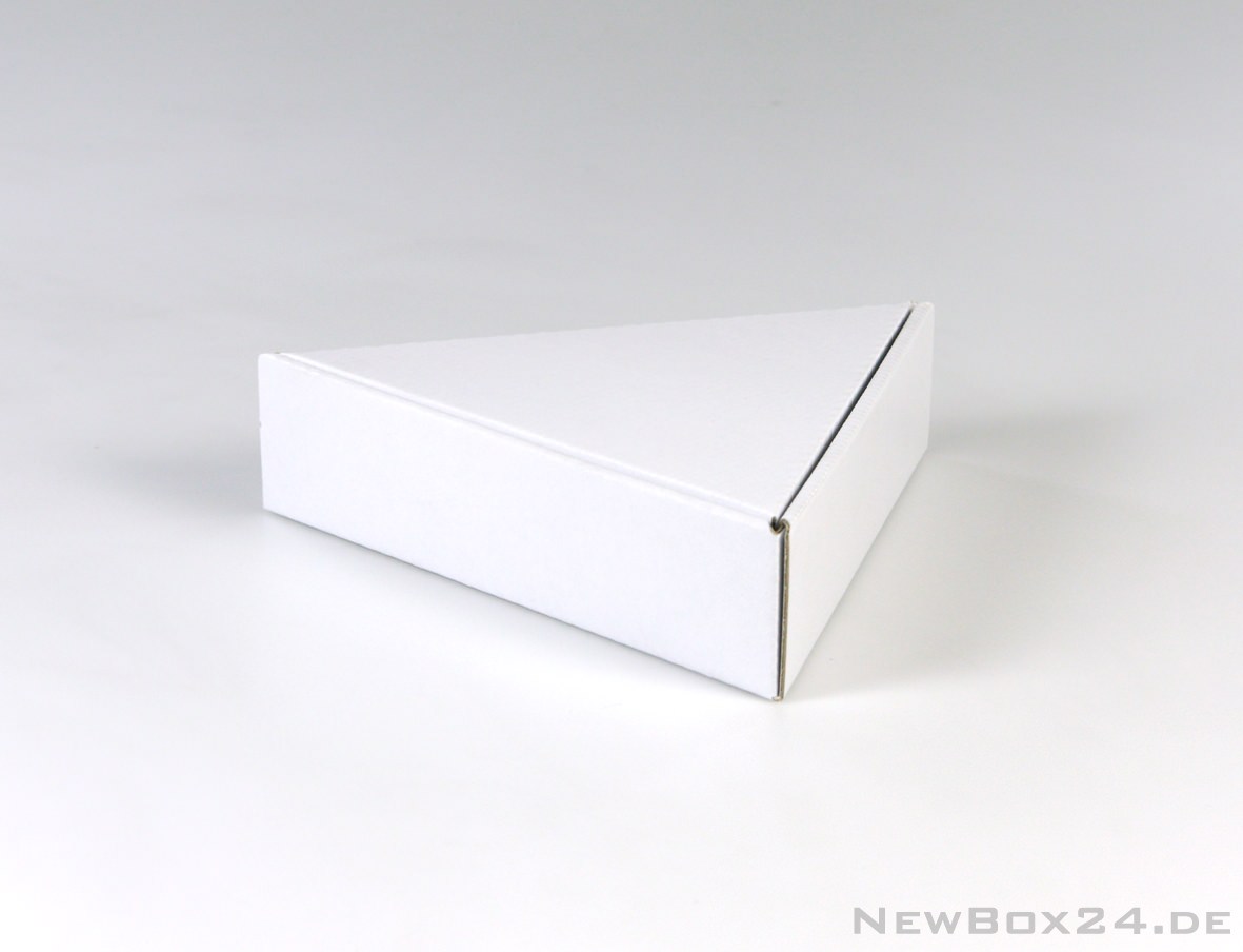 Klappdeckelbox 214 Triangel - 200 x 50 mm (Innenmaße), Wellkarton glatt in Standardfarbe weiß (Farben gegen Aufpreis möglich), Lieferung ungefaltet