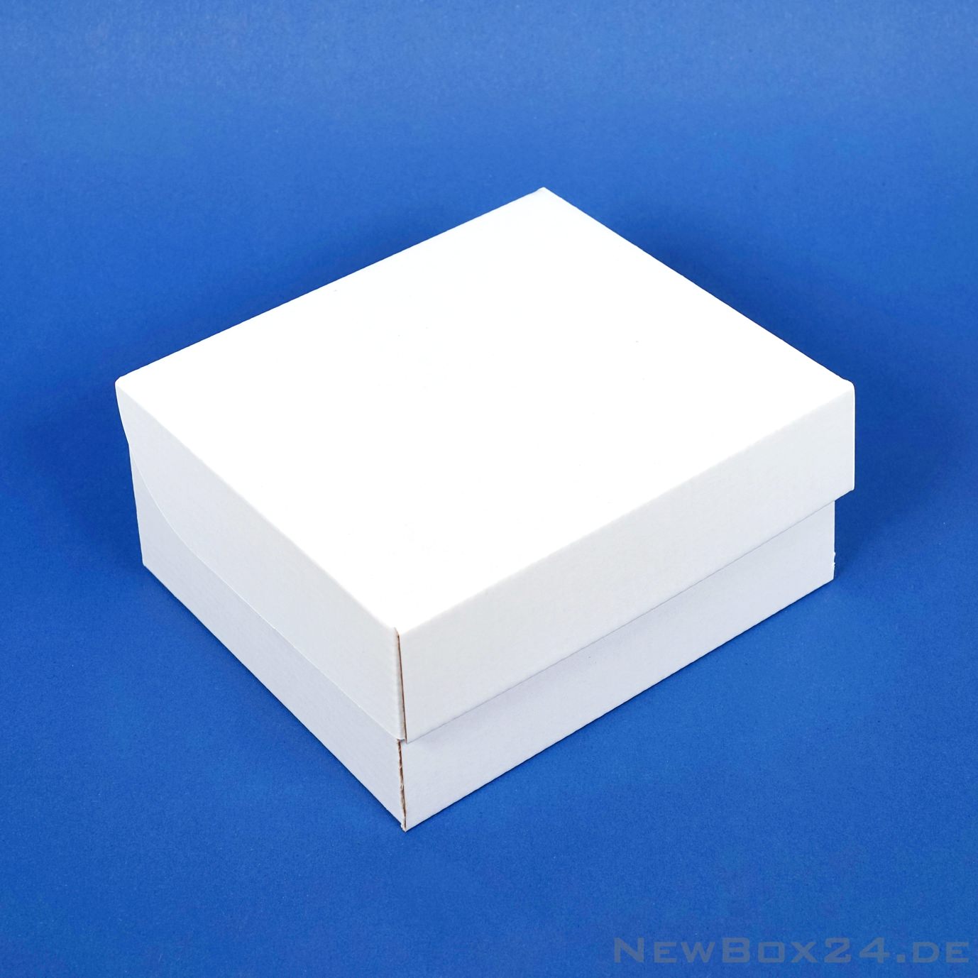 Klappdeckelbox 216 - 145 x 130 x 75 mm (Querformat - Innenmaße), Wellkarton glatt in Standardfarbe weiß (Farben gegen Aufpreis möglich), Lieferung ungefaltet