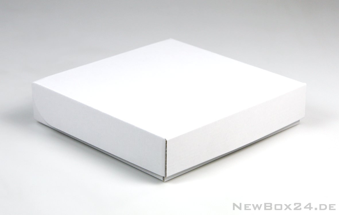 Klappdeckelbox 216 - 200 x 200 x 45 mm (Innenmaße), Wellkarton glatt in Standardfarbe weiß (Farben gegen Aufpreis möglich), Lieferung ungefaltet