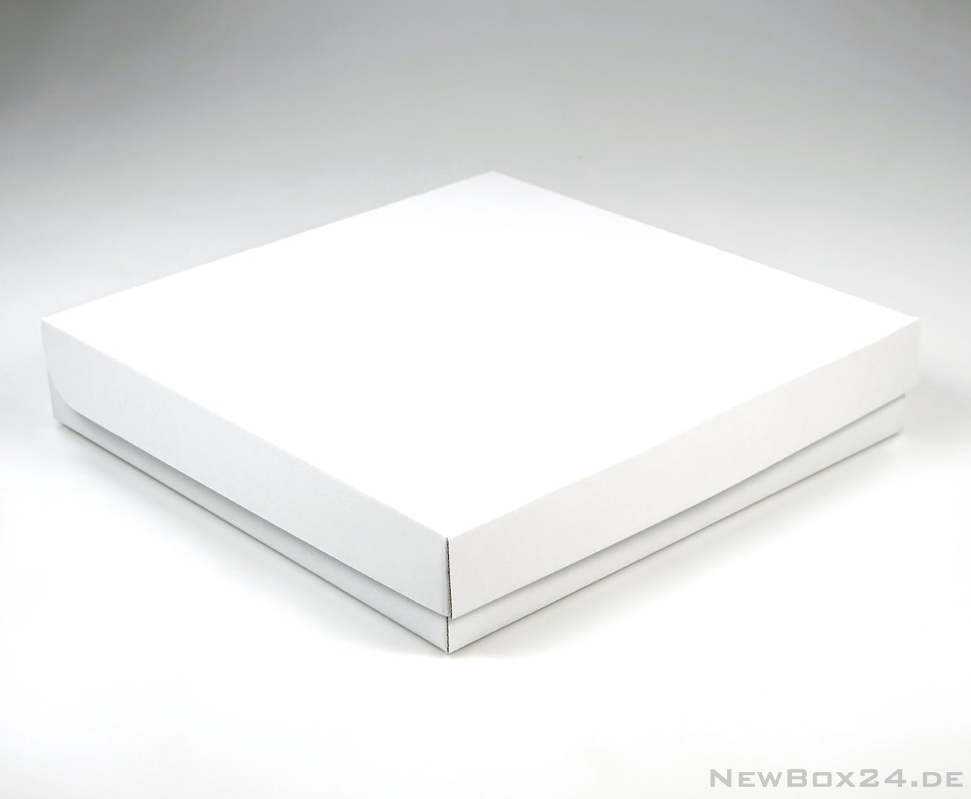 Klappdeckelbox 216 - 320 x 320 x 60 mm (Innenmaße), Wellkarton glatt in Standardfarbe weiß (Farben gegen Aufpreis möglich), Lieferung ungefaltet