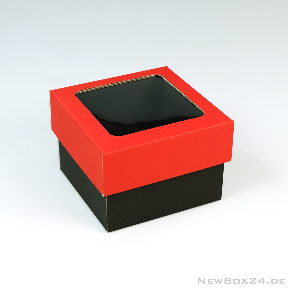 VARIO COLOR Stülpdeckelbox 415 - 130 x 130 x 100 mm (Innenmaße), inklusive Klarsichtfenster zum Einlegen, Wellkarton glatt in Standardfarbe nach Wahl (auch Boden und Deckel unterschiedlich ohne Mehrpreis), Lieferung ungefaltet