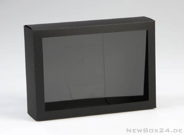 Postkartenverpackung, 180 x 112 x 33 mm (LxBxH) mit Fensterausschnitt und Klarsichtfolie, Karton in Standardfarbe nach Wahl (gold, silber, dekor gegen Aufpreis möglich), Lieferung ungefaltet, Klarsich ...
