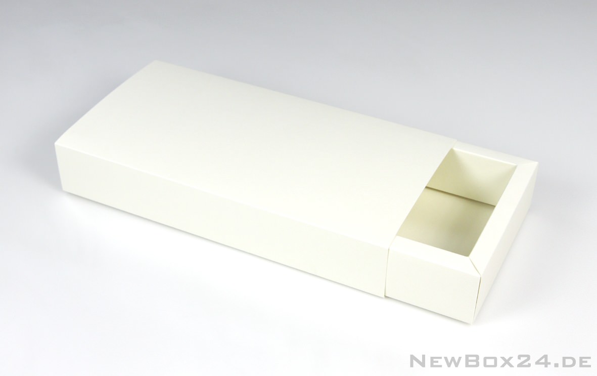 Schiebe-Geschenkbox 225 x 105 x 40 mm (Innenmaße), Karton in Standardfarbe nach Wahl (gold, silber, dekor gegen Aufpreis möglich), Lieferung komplett gefaltet