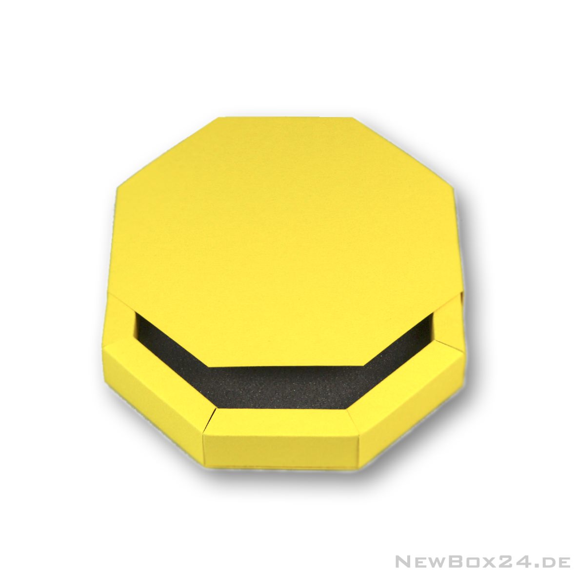 Schmuckverpackung Achteck, 120 x 20 mm (Innenmaße Durchmesser x Höhe), Karton in Standardfarbe nach Wahl (gold, silber, dekor gegen Aufpreis möglich), inklusive Schaumstoffeinlage 10 mm, Lieferung komplett gefaltet