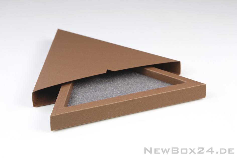 Schmuckverpackung Dreieck, Seitenlänge innen 180 mm, Karton in Standardfarbe nach Wahl (gold, silber, dekor gegen Aufpreis möglich), inklusive Schaumstoffeinlage 10 mm, Lieferung komplett gefaltet